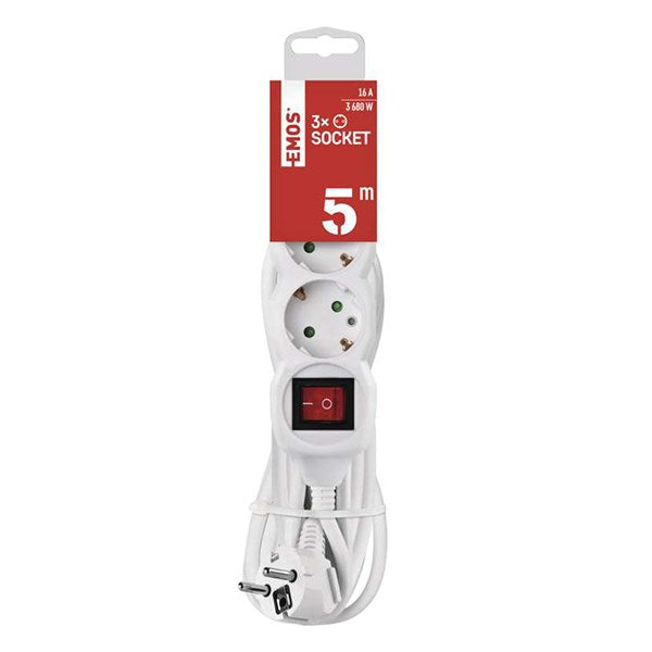 Kábel hosszabbító EMOS 3 aljzat 5m kapcsolóval fehér