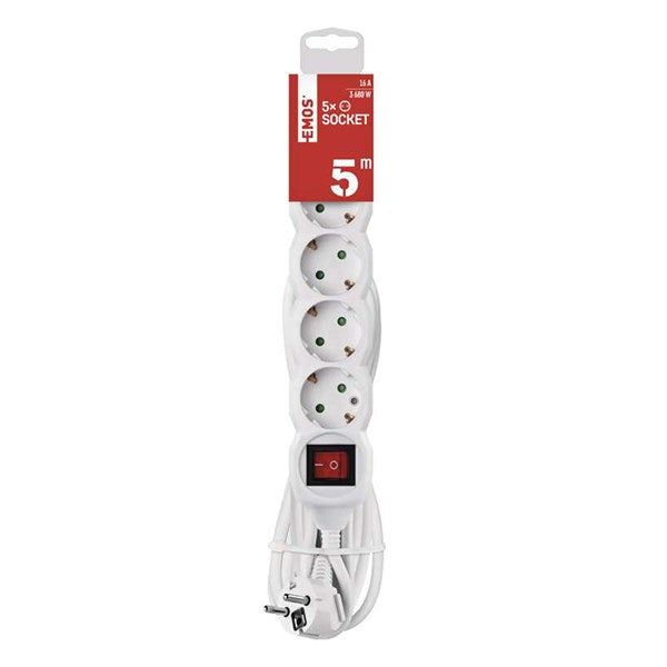 Kábel hosszabbító EMOS 5 aljzat 5m kapcsolóval fehér
