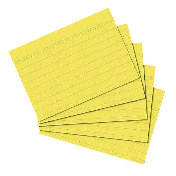 Kartotékkártya A7-es méretben, famentes, 170g/m2-es papírból, vonalas kivitelben, 100 ív/csomag, sárga színben.