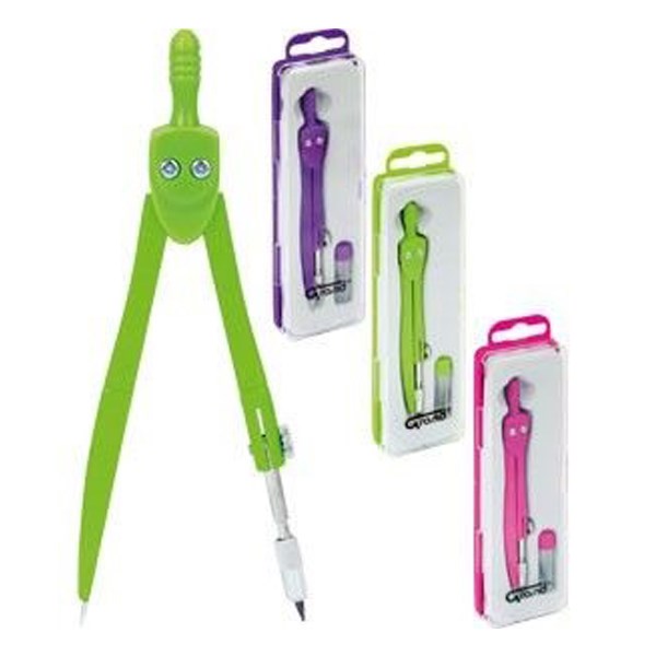Fémből készült, hagyományos iskolai körző műanyag dobozban, körzőbéllel. Méret: 121 mm
