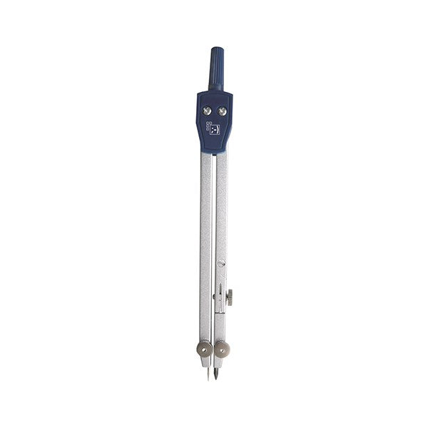 Iskolai törhető szárú körző, csavaros körzőbélbefogó szerkezettel. Hossza: 135 mm. A rajzolható kör átmérője: 420 mm.