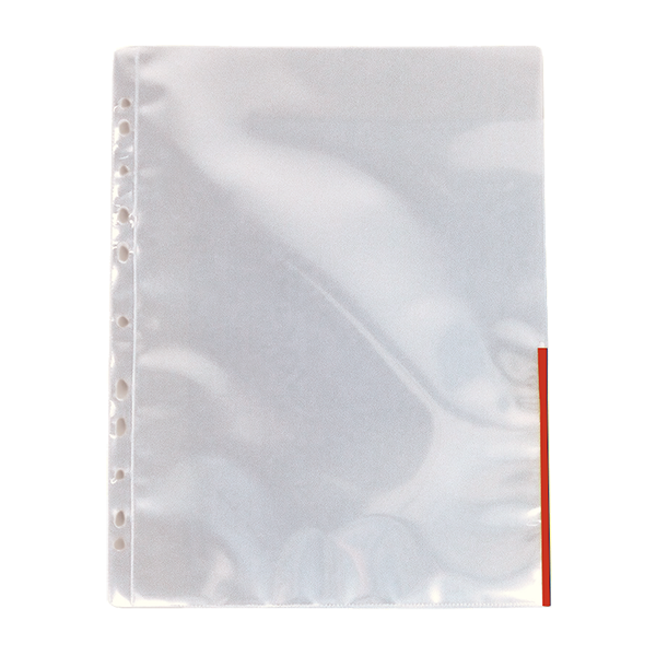 Erős lefűzhető tasak folyamatos, mindennapos használatra. Kényelmes tárolást biztosít iratrendezőkben, gyűrűskönyvekben. A színes perem megkönnyíti a dokumentumok rendszerezését. Víztiszta felületű, 105 mikron vastag, újrahasznosítható PP alapanyag. A színes perem lehetővé teszi a színkódolásos rendszerezést. Felül és jobb oldalon nyitott. A 11 lefűzőlyuknak köszönhetően bármilyen iratrendezőben, gyűrűskönyvben használható. A4 mérethez.