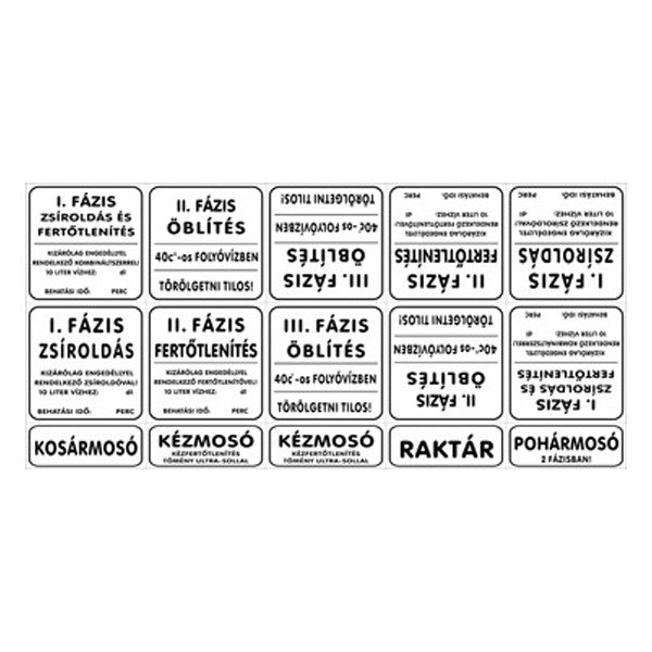 Az alap szettben is megtalálható mosogatási fázisok matricákból 2-2 garnitúra, nagykonyhák számára ahol több mosogatóhely van.