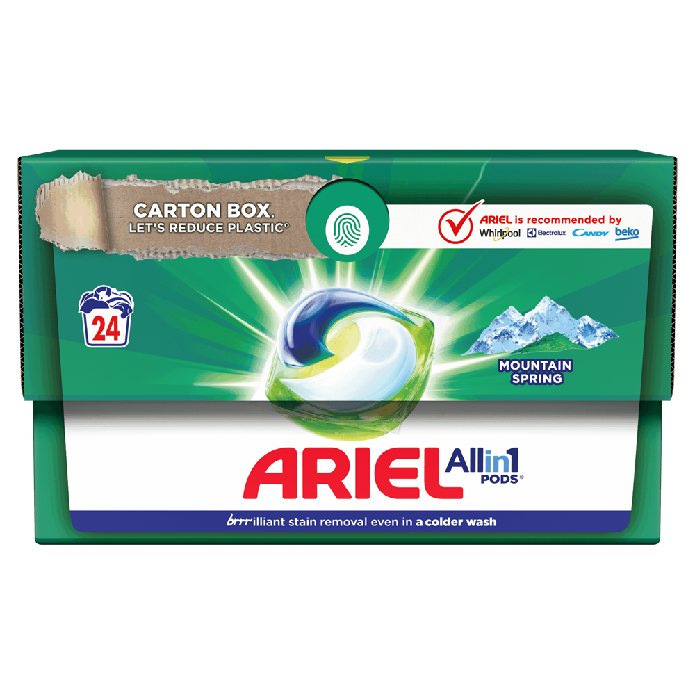 Az Ariel, - amely a Whirlpool, Electrolux, Candy és Beko mosógépgyártók által is ajánlott márka, - bemutatja az Ariel All-in-1 PODS® Mountain Spring mosókapszulát, amely ragyogó folteltávolítást nyújt hidegvizes mosásnál is. Hidegvizes mosáshoz tervezett különleges technológiákat, például Cool Clean technológiát alkalmaz. Ráadásul az újrahasznosítható ECOCLIC csomagolásának köszönhetően az Ariel mosókapszula segít a műanyaghulladék csökkentésében! Mindössze legfeljebb 5% műanyagot tartalmaz, és tökéletesen alkalmas a PODS mosókapszulák megfelelő tárolására. Vízzel érintkezve a 100%-ig vízben oldódó PODS filmréteg teljesen feloldódik, és az Ariel All-in-1 PODS Mountain Spring intenzív folteltávolító technológiája minden eddiginél alaposabb és hatékonyabb tisztítást végez. Figyelmeztetés: A termék egészségre ártalmas lehet és súlyos sérüléseket okozhat! Az Ariel All-in-1 PODS mosókapszula gyermekektől mindig távol tartandó! További információkért látogasson el a keepcapsfromkids.eu oldalra!