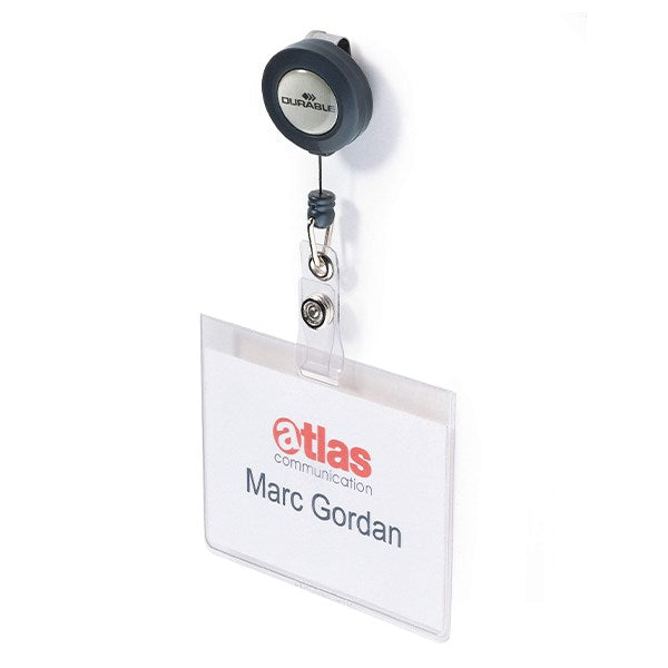Névjegykitűző DURABLE 60x90 mm kihúzható tartóval átlátszó