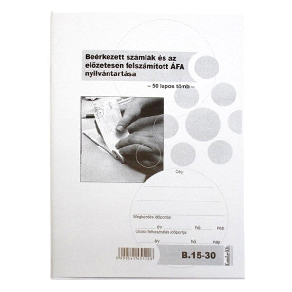 Nyomtatvány beérkező számla és áfa nyilvántartó