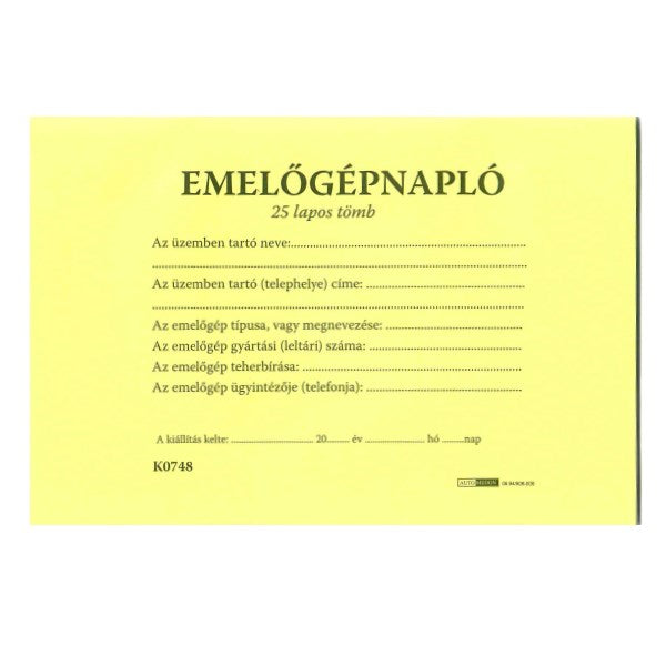 Nyomtatvány emelőgépnapló A/5 fekvő