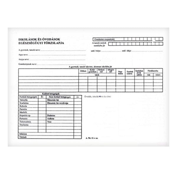 Nyomtatvány iskola és óvodai egészségügyi törzslap