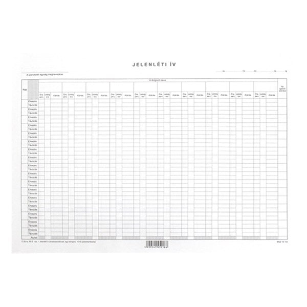 A/3 méretű, fekvő, 2 oldalas, 10 fő.