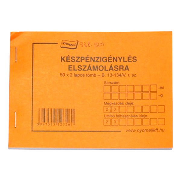 A/6 méretű, fekvő, 50 lapos, 2 példányos.