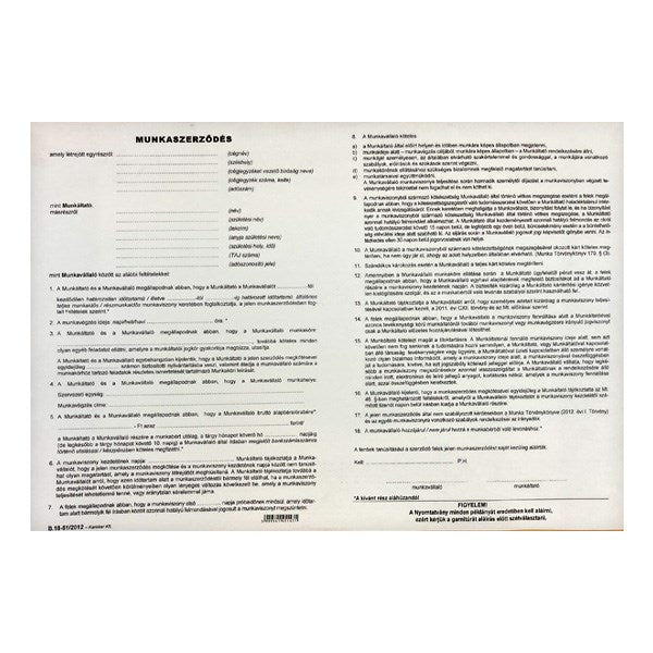 Nyomtatvány munkaszerződés A/3 3 lapos ÚJ