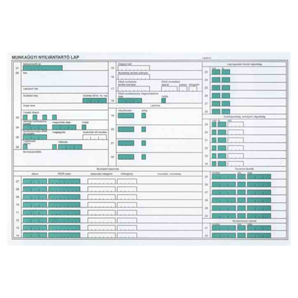 Nyomtatvány munkaügyi nyilvántartó lap
