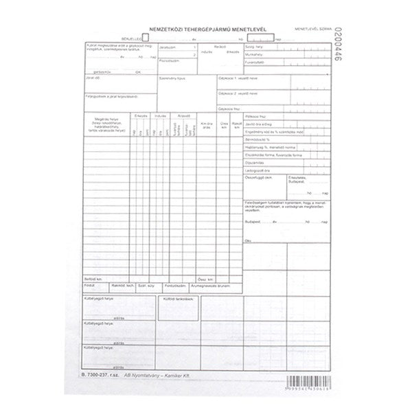 Nyomtatvány nemzetközi tehergépkocsi menetlevél