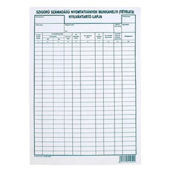 Nyomtatvány szigorú számadású nyomtatványok munkahelyi tételes nyilvántartó lapja A/4 1 lap