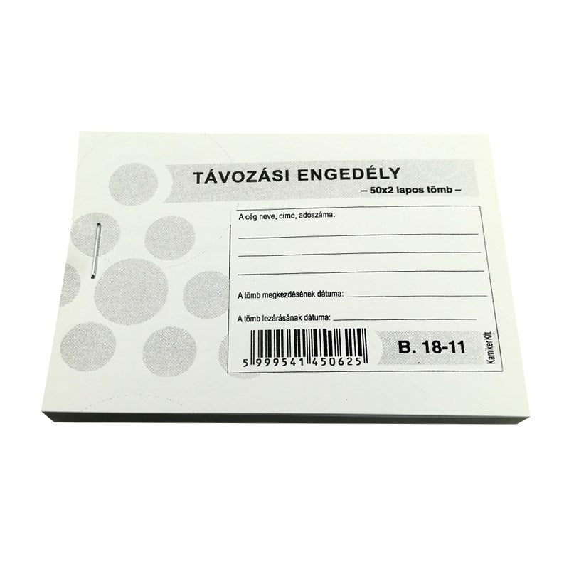 A/6 méretű, fekvő, 50 lapos, 2 példányos.