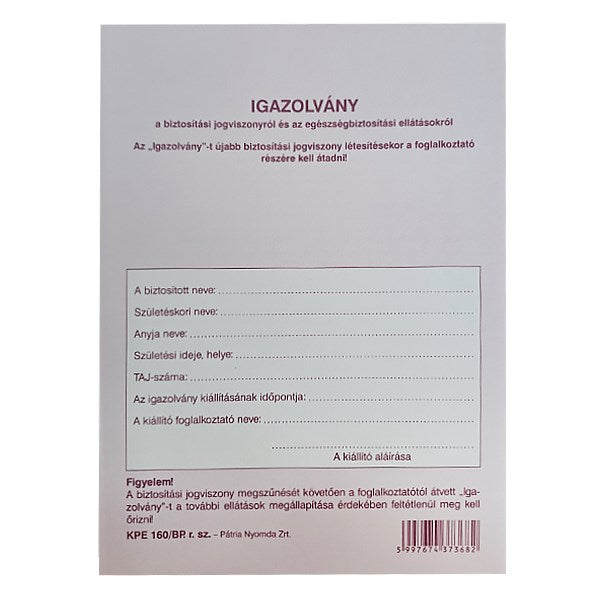 Nyomtatvány TB igazolvány PÁTRIA