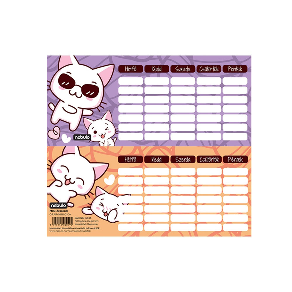 Órarend egylapos Cicás, 25 db/csomag, Nebulo