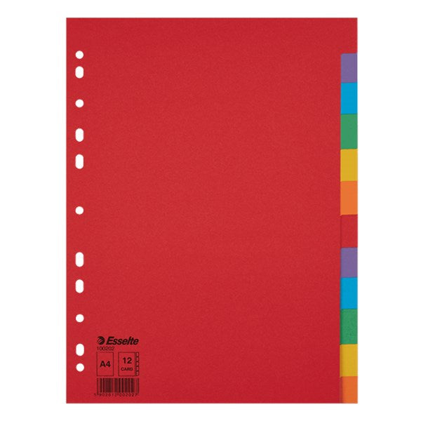 Tartós elválasztólap élénk színkombinációkban. Újrahasznosított karton alapanyag. 12 színes fül a könnyű rendszerezéshez. Hagyományos, 11-lyukú lefűzőrész. A4 formátum. Erős, 160 g-os karton alapanyag. Blue Angel minősített, újrahasznosított karton alapanyag. Blue Angel minősített, újrahasznosított karton alapanyag.
