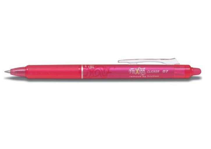 PILOT Frixion Clicker innovatív és divatos kialakítású rollertoll egyedülálló, hőérzékeny tintával, nyomógombos kivitelben. A leírt szöveg a toll végén található gumival való dörzsölés hatására eltűnik, majd korlátlan alkalommal újraírható és újra kitörölhető. Erős wolfram-karbid heggyel és gumimarkolattal a kényelmes írásért. Írásvastagság: 0.35 mm. Használata nem ajánlott szerződések, iskolai naplók, bizonyítványok illetve bármilyen hivatalos okirat írására, aláírására!