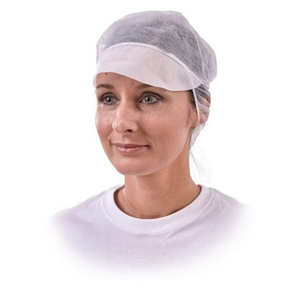 fehér színű, polipropilén élelmiszeripari sapka silddel és kontytartóval