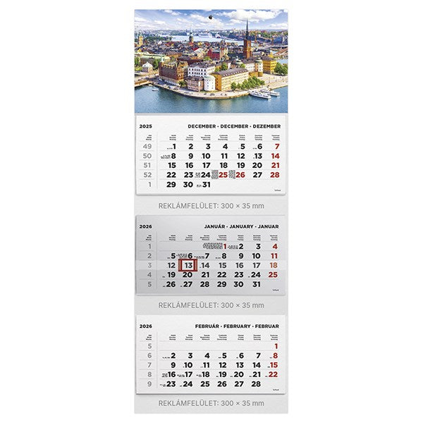Speditőrnaptár TOPTIMER T070 3 tömbös 3 havi Város 2026.
