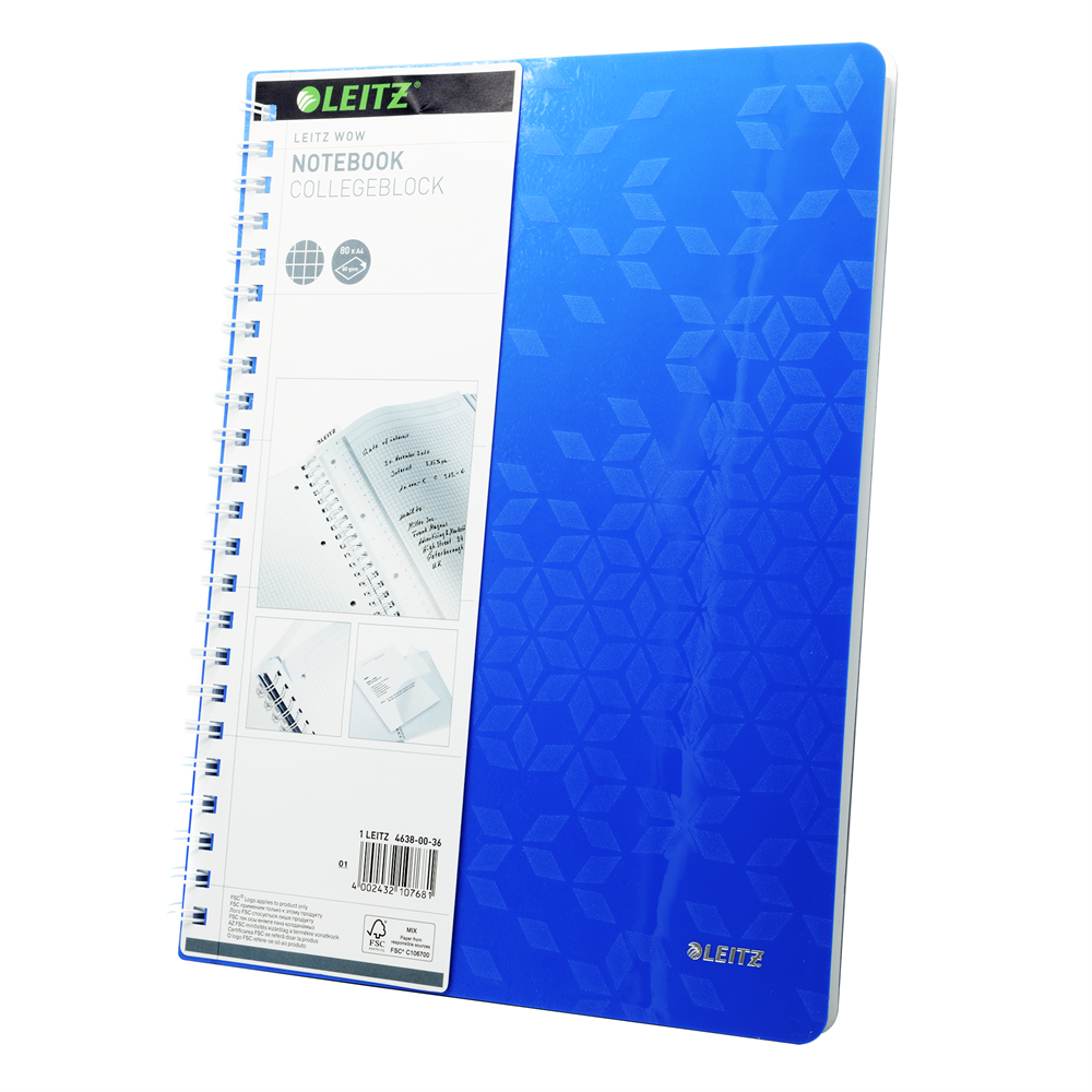 Spirálfüzet A4, 80lap kockás Leitz Wow kék
