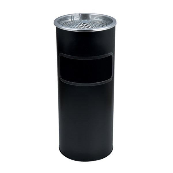 Szemetes hamutartóval tűzálló kültéri fém fekete 25x58cm