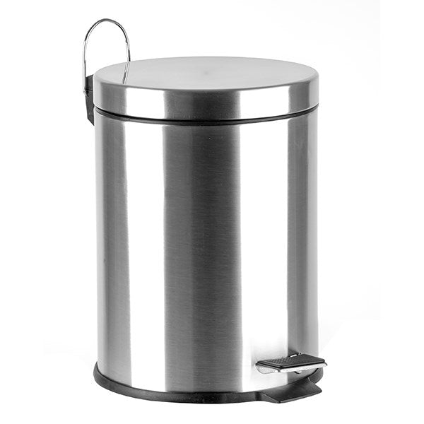 Rozsdamentes acélból készült pedálos szemetes, kivehető műanyag vödörrel.