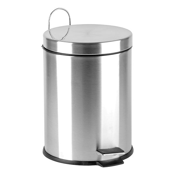Rozsdamentes acélból készült pedálos szemetes, kivehető műanyag vödörrel.