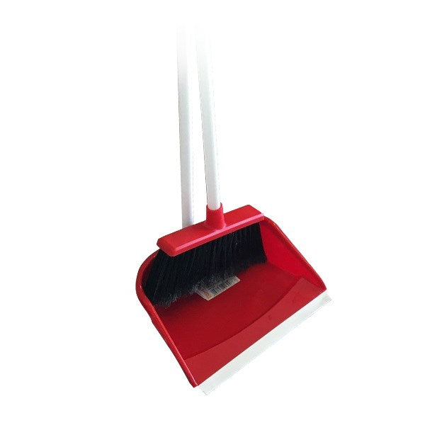 Háztartási szemeteslapát és műanyag szálú kefe szettben, álló kivitelben.