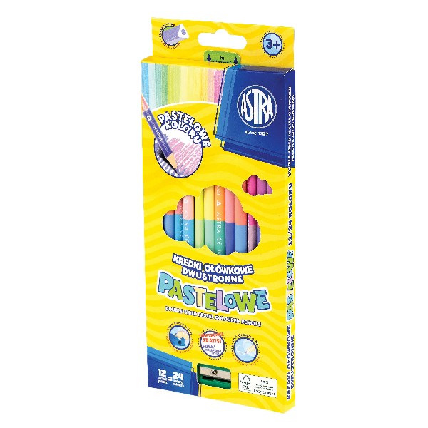 Színes ceruza ASTRA Duo háromszögletű kétvégű pasztell ajándék hegyezővel 24 színű