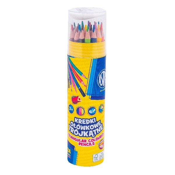Színes ceruza ASTRA háromszögletű henger dobozban hegyezővel 24 színű