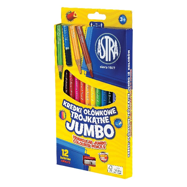 Színes ceruza ASTRA jumbo háromszög 12 színű ajándék hegyezővel
