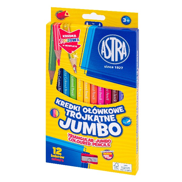 Színes ceruza ASTRA jumbo hengeres hegyezővel 12 színű