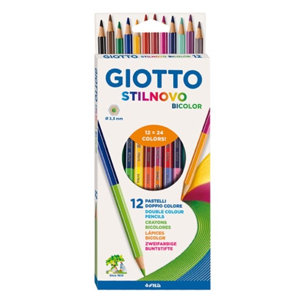 A Giotto Stilnovo Bicolor színes ceruza ideális választás iskolába, mivel a készletben kétvégű ceruzák találhatóak, így a 12 db-os készlet helyett máris 24 db ceruzával dolgozhatunk.