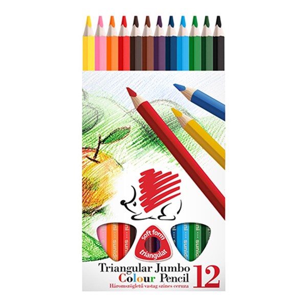 Színes ceruza ICO Süni háromszögletű vastag festett 12 darabos