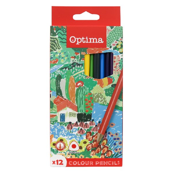 Színes ceruza OPTIMA háromszögletű vékony 12 darabos