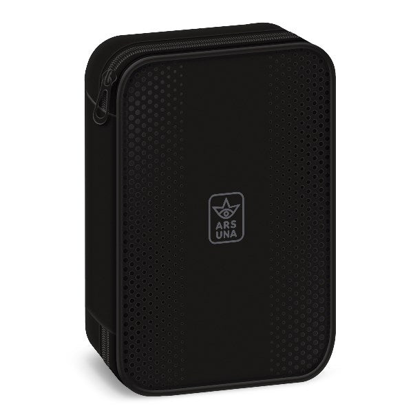 Többszintes, töltetlen, cipzáras tolltartó. Belül textillel bevont merev lapokkal, gumis kialakítással 30 ceruza számára az írószerek tárolásához és egy cipzáras belső zsebbel.