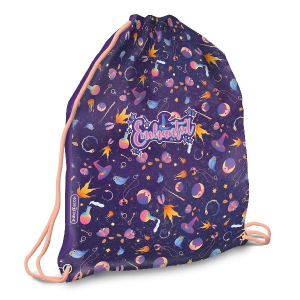 Tornazsák felül összehúzható zsinórral. Tartós és erős anyagból készült; könnyű, kis helyen elfér. Használható hátizsákként is.