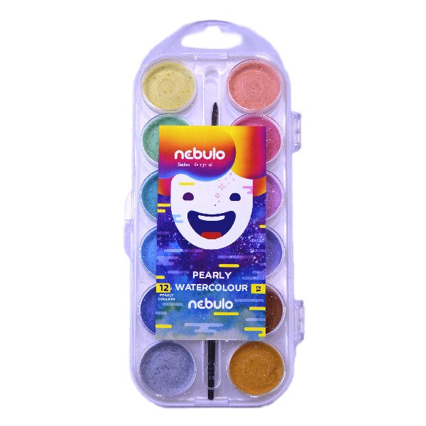 Vízfesték NEBULO 30 mm gyöngyház ajándék ecsettel 12 darabos