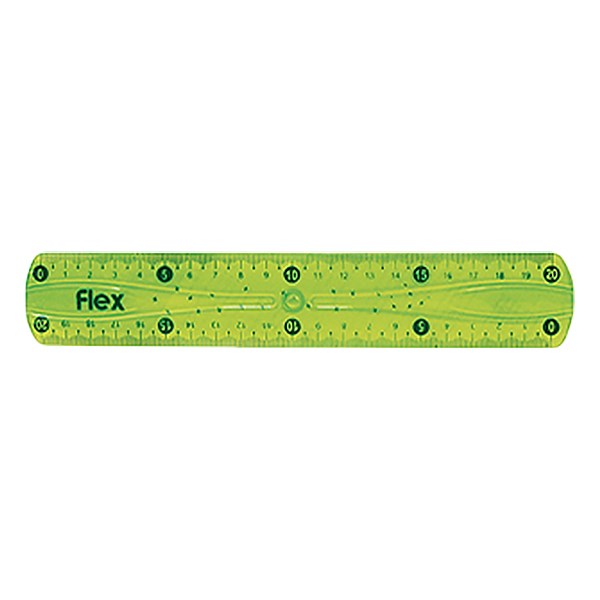 Törhetetlen rugalmas műanyagból készült 20 cm hosszú, színes, hajlékony vonalzó.